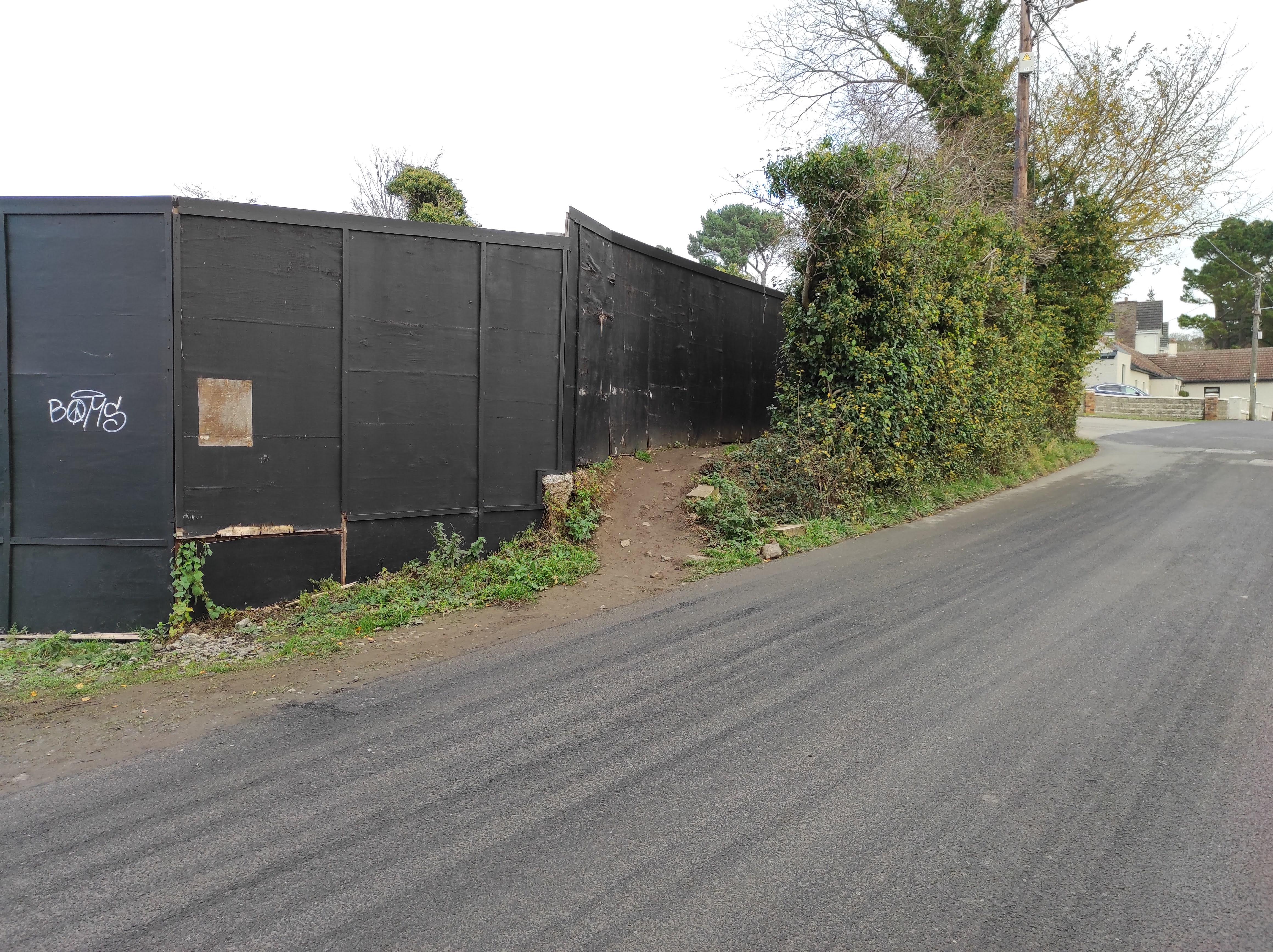 When you leave the green space, you will see a building site hoarding. Turn left at this hoarding. The route continues along the hoarding to join Seamount Road.