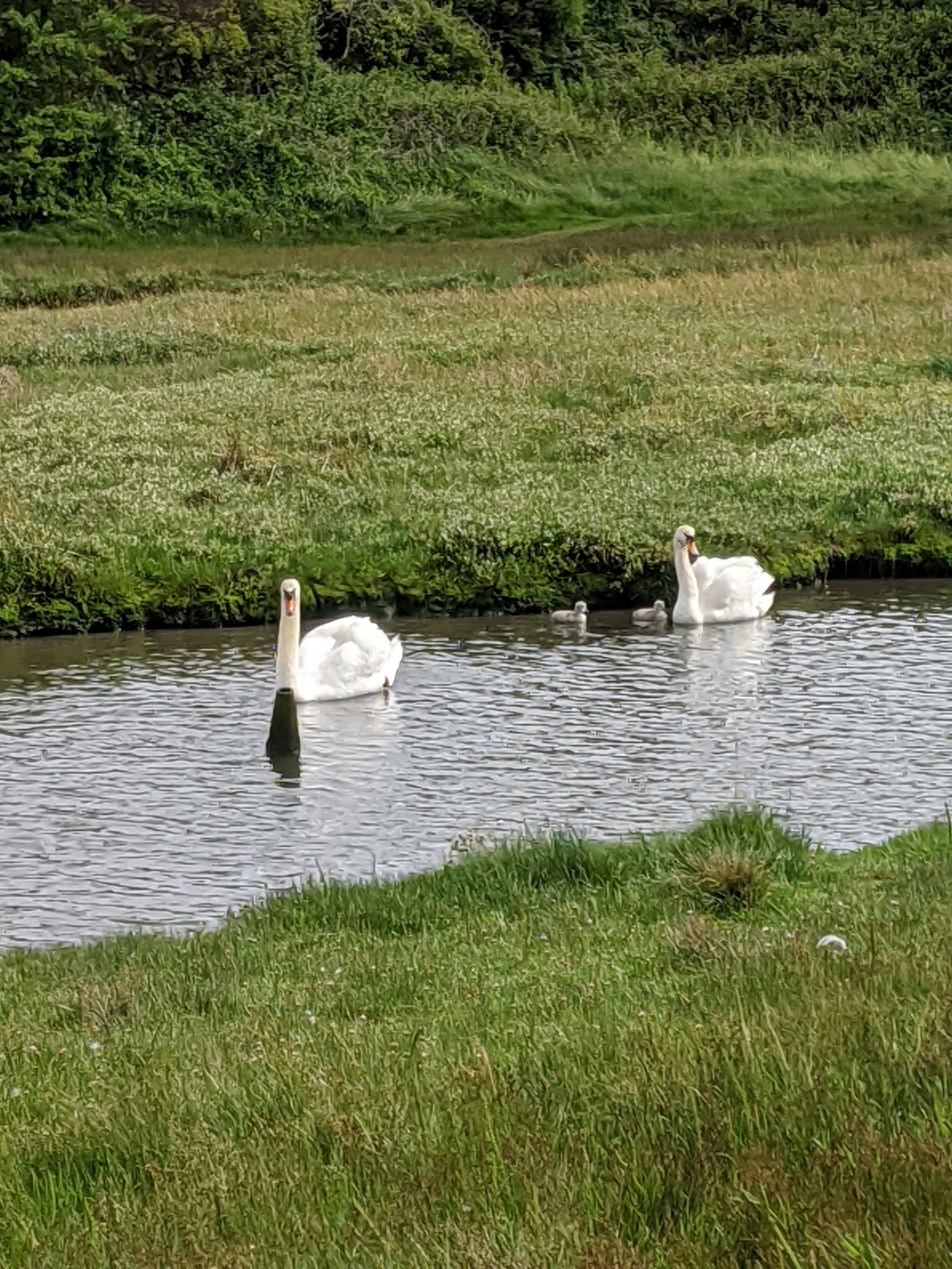 Estuary Park connects to the west via a narrow path (shown in red on the map) to a lovely car-free sand/gravel path (a bit narrow at approx. 1.5m wide) along the Southern shore of the Broadmeadow Estuary. It runs for 1.6KM between Estuary Park and the roundabout junction with Seatown Road. This path is perfect for cycling with young children, as it is completely off-road. A great nature trail with lots of birdlife – expect to see herons, swans, ducks etc.